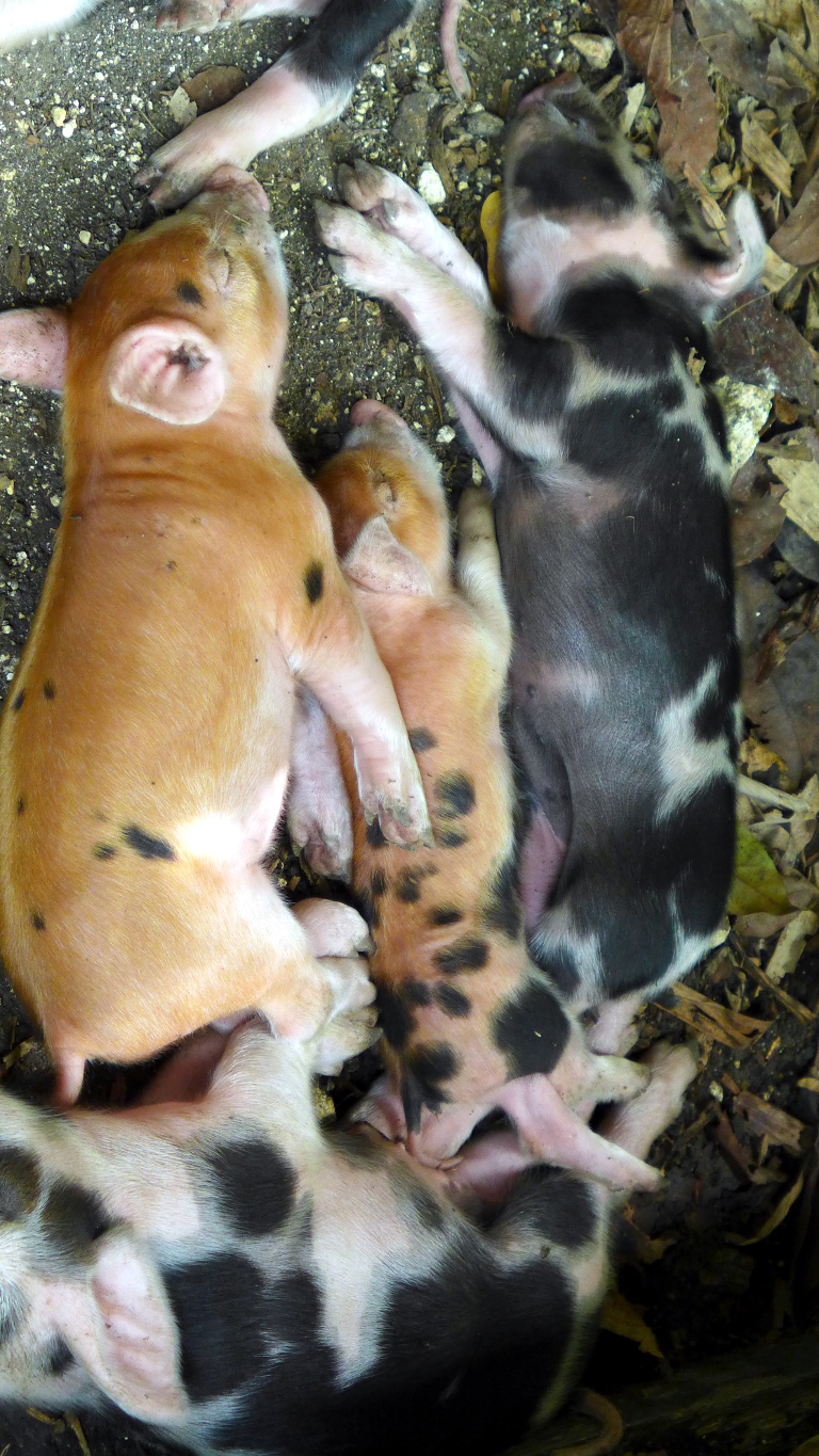 Observations: The small litter size is probably due to the condition of the boar. I decided to reduce the boar’s daily feed to reduce his weight. Unfortunately, this actually meant he wasn’t as strong and agile and thus kept falling off the sow during mating. When I started giving the boar the usual feed, he was much better. We didn’t need to cut piglets’ teeth. Perhaps because of the small number of piglets, although there was fighting at the teats, it wasn’t aggressive enough to upset the sow and disrupt suckling. Piglets were weaned at 35 days.